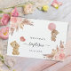 En vit bakgrund. Dekorerad med ro guld, rosa blommigtar, pampasgräs och två nallar. Anpassa och lägg till namn och datum.