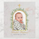Det finns ett foto från baby i en faux-guld-folie i ram, med grönt löv runt bågen. Framför allt finns det en kor, även en faux guld-folie. Under den står namn och tillfälle i ett gyllene kalligrafiskt manus, där datumet står i små svarta hattar. Bakgrunden är vit marmor. Platshållarfotot av pojke är av Petr Kratochvil från Public Domain Bilder och har modellversionen.