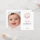 Baptism pink florals bow photo girl thank you card inbjudningar