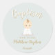 Baptism Pojke Denna vackra och söta baby är perfekt för ditt barns baptism. Utformningen består av en söt baby med vit hoppdräkt, vit bib med en guld kor. Bakgrunden till färg är ett delikat pulver i blått. Ta en titt på passande tillbehör, gåvor, party favors och papper.
