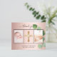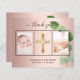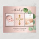Lägg till 2 eller 3 av Dina foton, lodrät storlekt, ett datum, namn och tackkortet. En , ro-guld-metallisk tittar bakgrund med svart text och ram, en eukalyptus sprig. Texten: Tack på framsidan och ditt namn på baksidan skrivs med ett handskript med snyggt med dekortecken.