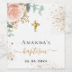 Anpassa och lägg till namn och datum. En vit chic bakgrund. Dekorerad med en vattenfärgad ro guld och rosa ros och grönt eucalyptus löv, sprig, grönsak, faux guld löv. En faux guld kor. För baptismmottagningen, luncheon och som gåva till prästen.