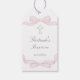 Baptism rosa båge ram presentetikett