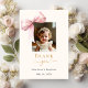 Ett modernt och elegant Baptism, ett kristet tack för en tjej. En mjuk gräddbaksida, dekorerad med stor rosa. Svarta och gyllene brev. På framsidan står texten: Tack, foto, namn och ett datum. Tillbaka: Mall för tackkort och namn.