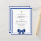 En modern, elegants- och baptisminbjudan. En vit bakgrund som dekoreras med royal blå ramar och båge. Anpassa och lägg till namn och detaljer. Svart färgad brev.