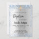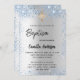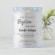 En modern, elegant baptism, som firar ett pojke. Faux silver metallisk tittar bakgrund dekorerad med blå faux glitter, sparkler och guldkor. Anpassa och lägg till information om namn och party. Svart färgad brev.