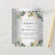 En faux silver tittar bakgrund som dekorerats med eukalyptus grey och guldlöv och faux silver glitter sparkles. En gyllene kor. Personalisera och uppgifter om barnets namn och ceremoni.
