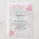 Baptism silver rosa blommigt glitter inbjudningar