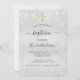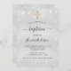 En modern, elegant och minimalistisk baptisminbjudan för både pojkar och flickor. Faux silver metallisk tittar bakgrund dekorerad med faux glitter stoft. Anpassa och lägg till namn och detaljer. Svart färgad brev.