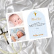 Ett modernt och elegantens baptism tack vare ditt kort. En vit och ljusblå chic som dekoreras med faux guld kor och en båge ram. Anpassa och lägg till två foton av pojkarna, tackkort och namn.