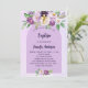 En violett, vattenfärgad lavender-bakgrund. Dekorerad med violett och lila vattenfärgade blommor och ett guldfärgat kor. Personalisera och namn och mottagningsdetaljer.