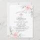 Rustik bouquet-blommigt med elegant i vattenfärg (vattenfärg), pastellfärgsmörjning, rosa, ro, rosor av vita blommor/körsbärsgrädda blommar på vit bakgrund och grönt mörk grått. Fina BAPTISM- / CHRISTENING- inbjudningar för flicka. Kor med faux diamant i mitten.