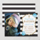 Svartblått och Guld Glitter-baptisminbjudan med anpassningsbar foto. Boy Baptism. First Communion. Christening. Barndom. Black and White Rand. Blå Blommigt blomma. Om du vill göra ytterligare anpassningar klickar du på knappen "Anpassa" och användor verktyg som är utformat för att ändra mallen.