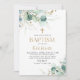 En formell baptisminbjudan med penselingptus (lush grönt eucalyptus accents) parad med uppgifter om elegant guld. Perfekt för att fira detta särskilda tillfälle med tidlös sofistikering.