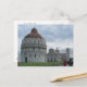 Bakgrunden i Pisa, Italien, är baptieriet och det unika monument som heter "Landet torn of Pisa".
