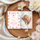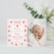 Fånga sötman av ditt barns första år med denna inbjudan med jordgubbtema. Med en anpassningsbar platshållare för foto bredvid handmålade akvarellbär och en rosa coquettebåge skapar denna design en vacker och personlig souvenir. De känsliga rosa ränderna och det vintageinspirerade estetiska gör den till ett utmärkt val för en minnesvärd "Berry First"-firande.