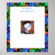 Färgglad sprutad färg i rött, blått, grönt, lila, gult och rosa. Bakgrundsfärgen kan ändras. Byt foto till din sons. Det finns matchande inbjudningar, stämplar, RSVP-kort, adressetiketter, bordskort, vattenflaskeetiketter och servetter.