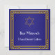 Inbjudan till Bar Mitzvah i marinblått, guld och med Davids stjärna.