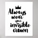 Bära alltid ditt osynliga krona, ett underbart inspirerande citat om förtroende. Helt anpassade färg.