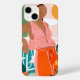 En kvinna lutar sig tillbaka, blöder i det varma solljuset, omgiven av lush grey och blommar. Mjuka pasteller och feta orangar skapar en drömmande, avslappnad sommarvibe. Scenen fångar ett fredligt ögonblick av lugn och ofruktbar skönhet.