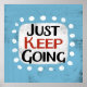 "Just Behålla Going" är en toppen söt inspirerande typografisk design på ljusblått med vit accent-trim.
