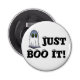 Bara Boo IT1 i lustiga svarta bokstäver som har öga på ovansidan av några av brev. Till lämnad om brev är ett vitt spöke med lila skuggor och ovalad grönt hål för öga. Roligt för lite Halloween Treat.