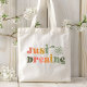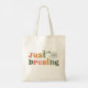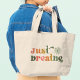 Bara Breathe Modern Typography Dandelion Flower Tote bags har texten "Just Breathe" i en modern manustypografi som accentueras med en dandelionblomma. Perfekt som en gåva till henne för födelsedag, jul, Mors dag, bästa vänner, systrar med mera. Designad av Evco Studio www.zazzle.com/store/evcostudio