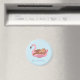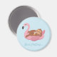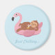 En magnet med en söt sengångare som chillar med en juice dryck och ligger lat på en rosa flamingo flotte. Bakgrundsfärgen kan ändras i anpassningsläge. Texten lyder "Bara Chillar". Whimsisk, trendig och rolig design för tjejer i sommar!