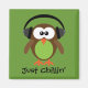Coolans anpassade grönt är fyrkantig Just Chillins magnet med en söt funky tecknad uggla med hörlurar. En roligt originell gåva - perfekt för tonåringar och musik i älskare.