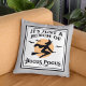 Fira Halloween i i stil med den här roligten "Det är bara en bunch av Hocus Pocus", citat dekorativ kudde. En ond häxa som flyger på en broomstick framför ett fullt måne med snyggt typografi. Tvåsidig design i svart, vitt och lätt grått färg som kan anpassas för att koordineras med fallskärmsdekorationen.