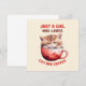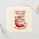 Fira kärlek för katter och kaffe med vårt berömvärda hälsningskort "Bara en flicka som Kärlek och kaffe"! Med en söt kattunge som pissar på ett rött kaffe kopp är den här charmerande konstverken perfekt för både kattälskare och kaffeentusiaster. En underbar gåva till dig själv eller den speciella som biter katt och mysiga kaffestunder.