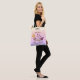 Land Folk Art i påsen "Just a Girl WHO Kärlek Chickens" har tre flerfärgade, mönstrade konstkycklingar som nibbar på någon kyckling matar. Kycklingar är olika rosa-, gult- och svarta nyanser. Två folkkonst träd som är en rosa för hallon och en gult för orange befinner sig i bakgrunden. Bakgrunden är en lavender-rosa och gult-kombination. Anpassa väskan överst med ditt namn.