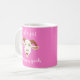 Rosa mugg med en tecknad som skrattar ansikte och ord är bara en flicka som kärlek getter. Du kan anpassa och ändra texten och färg. Underbar gåva till älskare och getuppfödare.