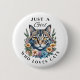 Katt med grått-brindel i katt för utspädd vattenfärg omgiven av rosa och blåa blommor.