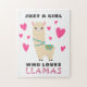 Adabel Llamas som dekoreras i traditionella sedlar och sadel. Textläsningar: "Bara en flicka som kärlek Llamas".