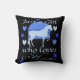 Bara en flicka som Kärlekar hästar i blått Kudde