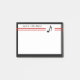Den här roligten är vit med svart gräns. Utformningen har högst upp två röda styrda linjer och en enda musikalisk lapp. Texten lyder "Bara en liten anmärkning" kan vara personlig med din egen fras eller namn.