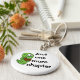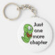 Rolig nyckelring perfekt för bokälskare. Söt bokmask som bär glasögon och håller i en brun bok. Han visar tummen upp och har en stor glad leende. Till höger om masken står orden "Bara en till kapitel" i svart stil.