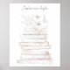 En romantisk pil av bokar i vitt och guld, med ett känsligt tips om rosa, och ovanpå är en massa vita blommor. "Bara ett kapitel till" skrivs i en handskriven, kursiv text. Gott biet om väggkonst och en underbar gåva till bok älskare.
