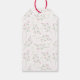 Gift-märkre som säger "just för dig" inuti ett band för söt rosa, med skräddarsytt namn och en charmerande rosa i ett kvadrat ram med rosa gräns. Bakgrunden är ett mönster med vilda blommor av hand plockade rosa med långa gröntar och löv på en gulskvit färgad bakgrund. Rosa cirklar och spritar dekorerar också designen. Utformning av blommigt och söt.