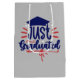 Studenten ord-konsmönstret har "precis graderad" text med hylsa/pantbord i rött och blått färg på gråttets bakgrund