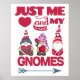 Bara jag och Gnomes, den här söta designen har tre gnomer i rött vitt och blått med texten "Just me and my Gnomes".