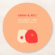 Det här anpassadet underlägg duschar vid grund, två gått med runda organiska former i rött och kräm som symboliserar kärlek, par och giftermål. Följande ord är inskrivet: namn och datum och ställe i bröllop. Bakgrunden är lax.