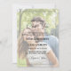En modern bröllopsinbjudan med elegant kalligrafi och ett speciellt fotoöverlägg på framsidan.