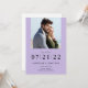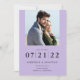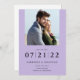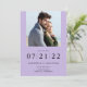 Med det här enkla Spara datumkortet får du ett foto på framsidan och ett på baksidan. Bakgrunden är ljusa lilor där bröllop-datumet är stort i svart.