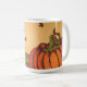 Bara pumpa en i fält. Höst löv faller. Kaffemugg