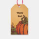 Bara pumpa en i fält. Höst löv faller. Presentetikett