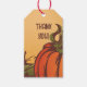 Bara pumpa en i fält. Höst löv faller. Presentetikett