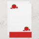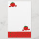 Skicka en anteckning på den här roligten på trädgårdsdepå med mogna röda tomater. En gräns av rött med grönt punkter.