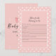 Fira och spela detta råd för Mamma-to-be-babyduschspelet med denna gigantiska rosa temadesign. Vit polka-punktbakgrund på framsidan och enkel, söt båge på baksidan. Mallar skapat för dig på baksidan.